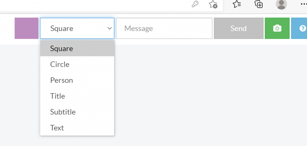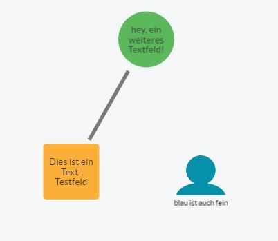 Habe ich Farben und Symbol ausgewählt, gebe ich ins Textfeld den Beschriftungstext für das jeweilige Item ein und drücke „senden“. Flugs erscheint mein Baustein auf dem Whiteboard. Ich habe, wenn er markiert ist, die Möglichkeit, ihn zu löschen (Papierkorb-Icon) oder auch vor Veränderungen durch andere Teilnehmer zu schützen (Schloss-Icon). Auch kann ich Farbe und Form beliebig verändern.