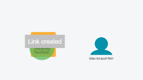 Nun fehlen Verbindungen. Die generiere ich, indem ich das zu verbindende Item auf dasjenige ziehe, mit dem ich es verbinden will, und dort halte, bis ein kleiner grauer Kasten bestätigt: „Link created“.