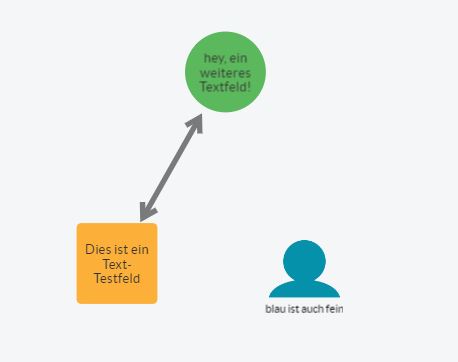 Nun kann ich das Symbol wieder wegziehen und sehe: Es gibt eine Linie zwischen beiden Icons. Durch Klick auf diese Linie kann ich selbige zum Pfeil verwandeln, mehrfaches Klicken ändert die Zeigerichtung oder konstruiert einen Doppelpfeil.
